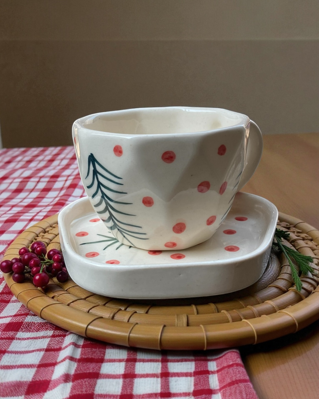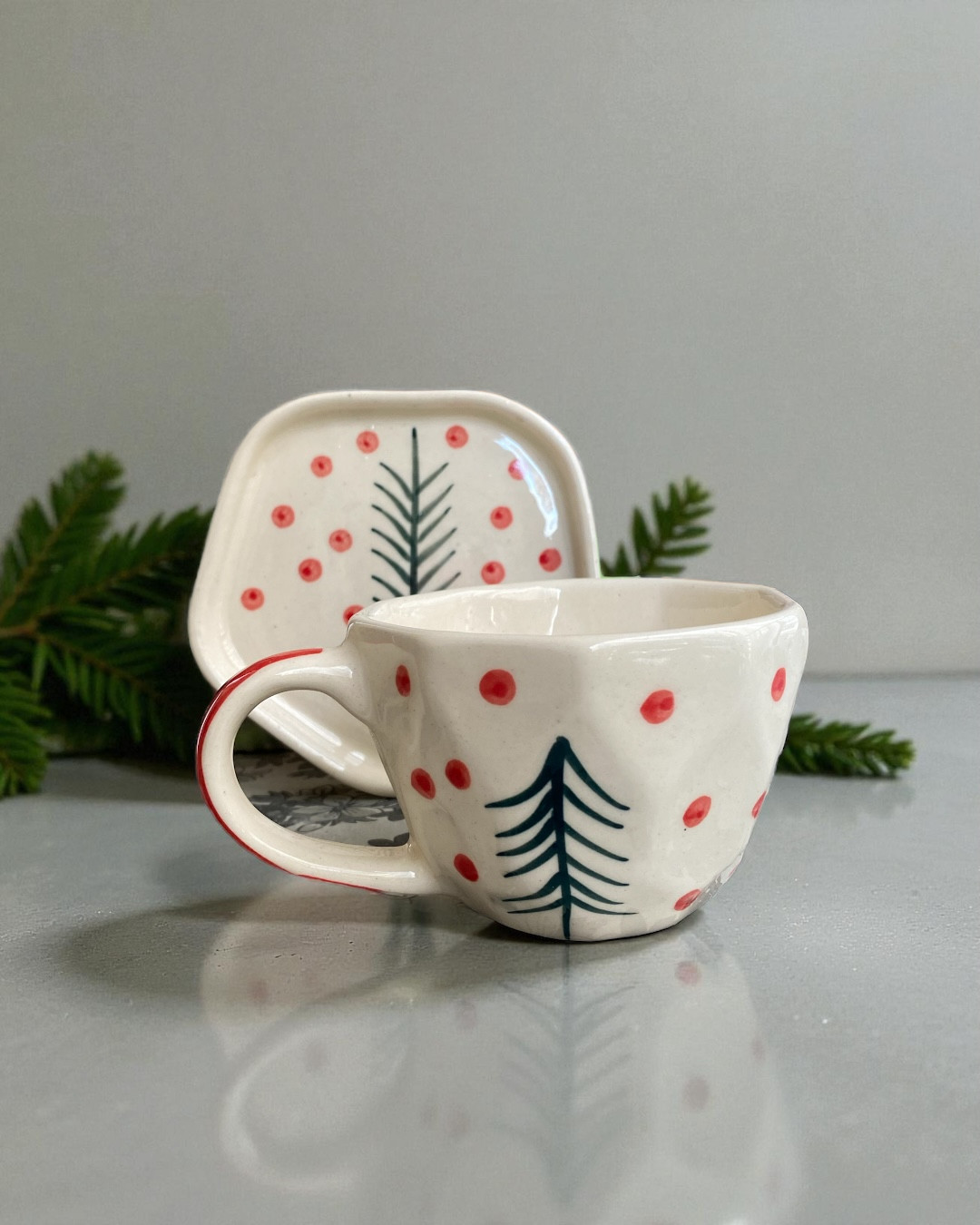 Dot and Tree Mug and Plate Set